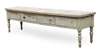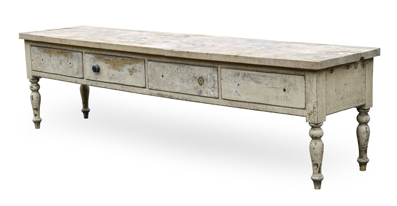 the rounded rectangular top above four frieze drawers, raised on baluster turned legs