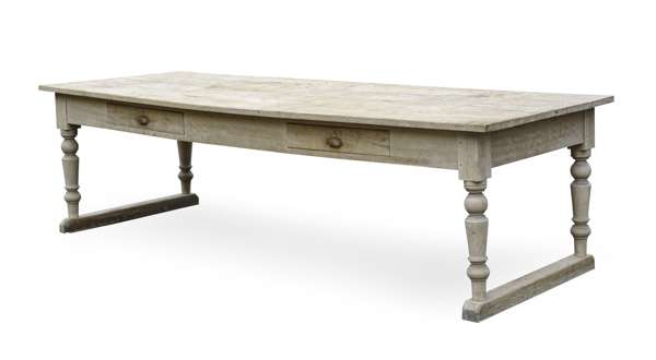 the rectangular planked top above a plain frieze, raised on baluster turned legs