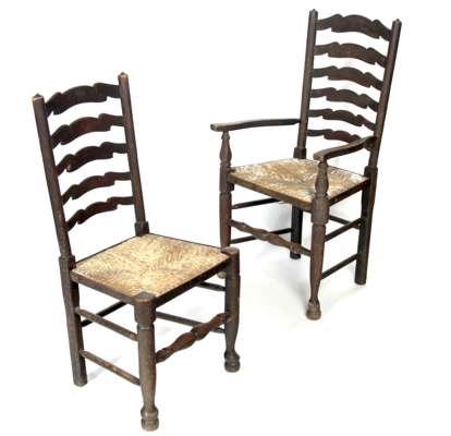 SET OF EIGHT STAINED OAK LANCASHIRE LADDERBACK CHAIRS