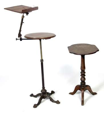 raised on a cast iron base, 38cm diameter, 100cm high (approximately); together with a Victorian oak tripod table, 50cm wide, 67cm high (2)