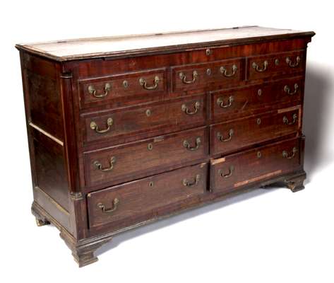 GEORGE III OAK AND MAHOGANY CROSSBANDED MULE CHEST