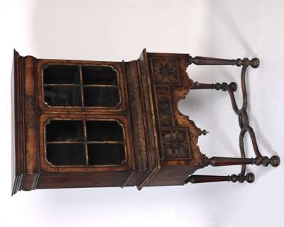 WILLIAM AND MARY STYLE WALNUT AND OYSTER VENEER CABINET ON STAND