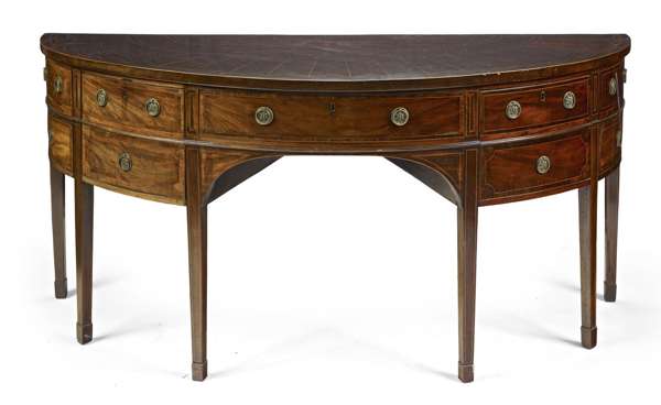 GEORGE III MAHOGANY AND INLAID BOWFRONTED SIDEBOARD
