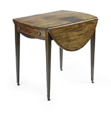 GEORGE III MAHOGANY, CROSSBANDED AND LINE INLAID PEMBROKE TABLE