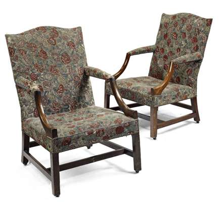 PAIR GEORGE III MAHOGANY GAINSBOROUGH CHAIRS