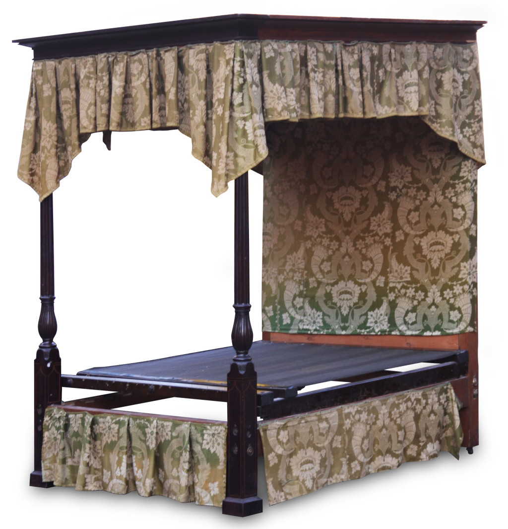 EDWARDIAN MAHOGANY AND INLAID FOUR POSTER BED