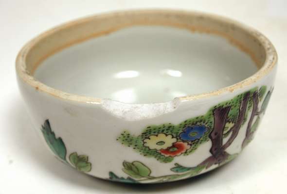 the cover with chrysanthemum blossom, the body profusely decorated with exotic birds sitting on rocks amongst bamboo, chrysanthemums, other flowers and foliage