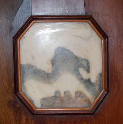 each framed rectangular panel with geometric form handle to the top, and four inset dreamstone panels, fan shaped, square with canted corners, circular and square (3)