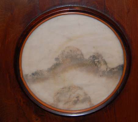 THREE CHINESE DREAMSTONE AND STAINED WOOD PANELS
