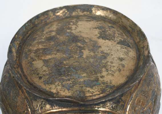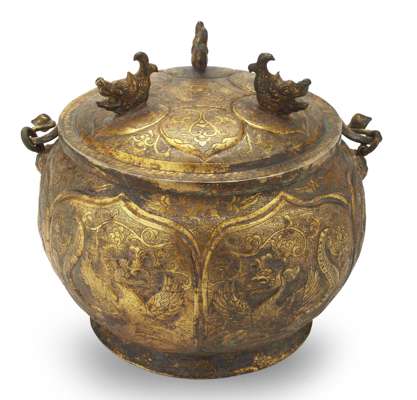 RARE CHINESE GILT-COPPER REPOUSSE JAR AND COVER