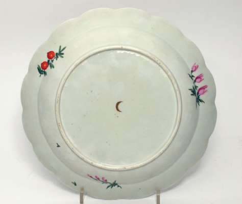 Note: This plate is from one of the most elaborately decorated services produced at Worcester, designed for William Henry, Duke of Gloucester (1743-1805). All known pieces are marked with a large gilt crescent, a mark found only on a few richly decorated services produced in the 1770s. The service passed to the Dukes of Cambridge and, in 1904, Christie's sold over seventy pieces for the family along with a similarly decorated Chelsea service dating to circa 1762.