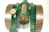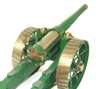 with its breech loading action, elevation ratchet, riveted iron gun carriage, large cross spoked iron wheels, brake levers, iron retractable tow bar, the three stage barrel with flared muzzle and foot plates at front and back.