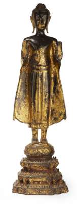 SOUTH EAST ASIAN GILDED BRONZE STANDING BUDDHA