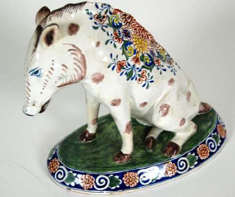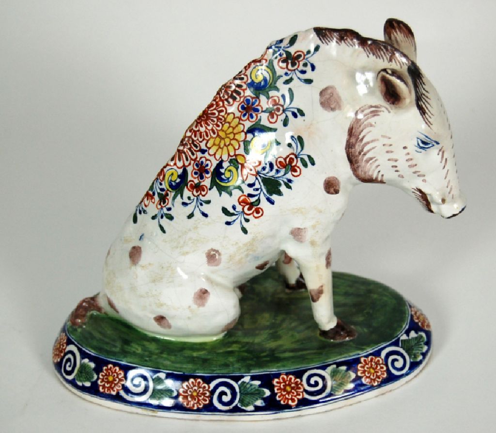 FRENCH FAIENCE FIGURE OF A SEATED BOAR