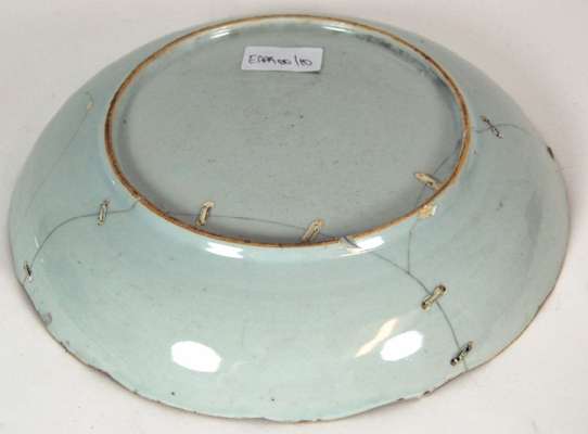 of circular scalloped form, decorated with a lady in a leaf-form boat, tobacco leaves and flowers (riveted)