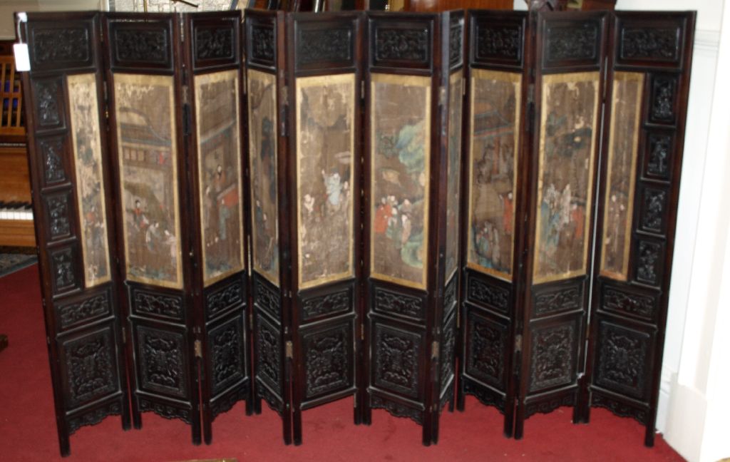CHINESE HARDWOOD TEN FOLD SCREEN