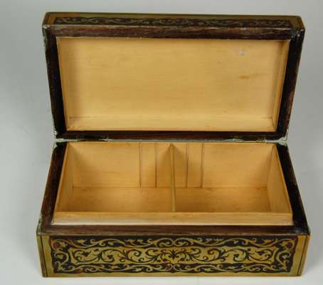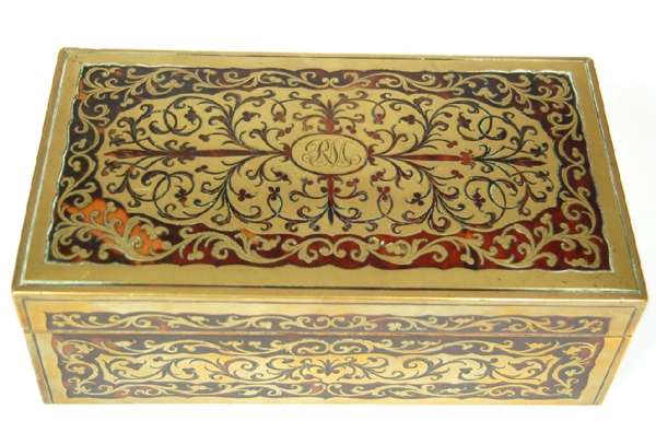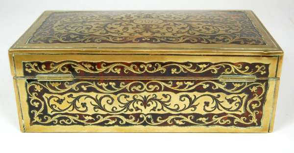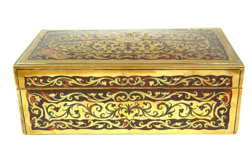 EDWARDIAN BRASS AND TORTOISE SHELL BOULLE WORK CIGARETTE BOX