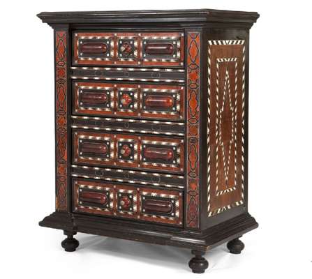 INDO-PORTUGUESE TORTOISE SHELL, EBONY AND IVORY INLAID COMMODE
