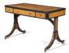 RARE CHINESE EXPORT AMBOYNA, EBONY AND IVORY INLAID LIBRARY TABLE