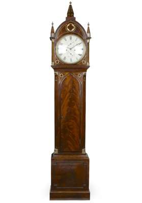 REGENCY MAHOGANY AND BRASS INLAID LONGCASE CLOCK