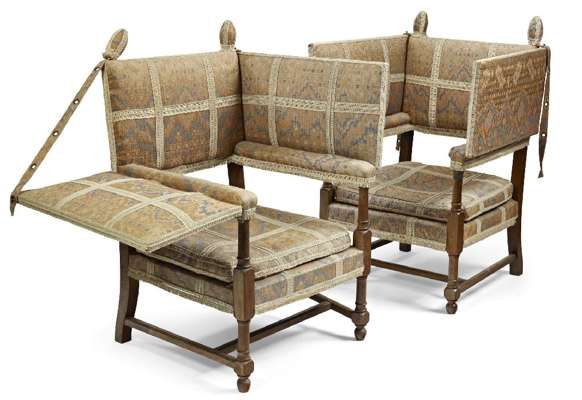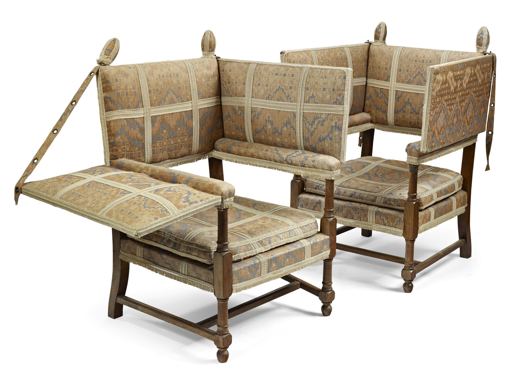 of typical form, raised on baluster turned legs united by H-stretchers (2)