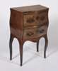 the shaped top above two drawers, raised square cabriole legs
