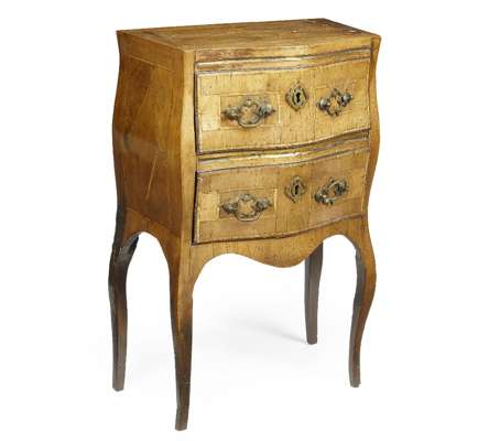 CONTINENTAL WALNUT PARQUETRY BOMBE COMMODE