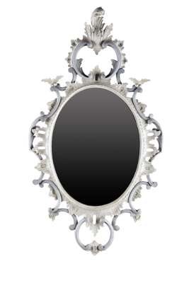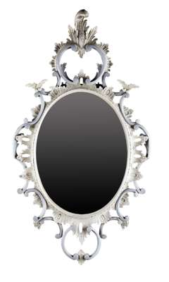 PAIR OF CARVED GREY PAINTED OVAL MIRRORS