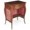 the shaped moulded top with a rising screen, above a brushing slide and dummy drawer, flanked by a further real and dummy lateral drawers, raised on slender square cabriole legs united by an under tier