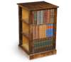 the square top above three opposing open shelves, flanked by faux bookend sides, raised on a plinth base