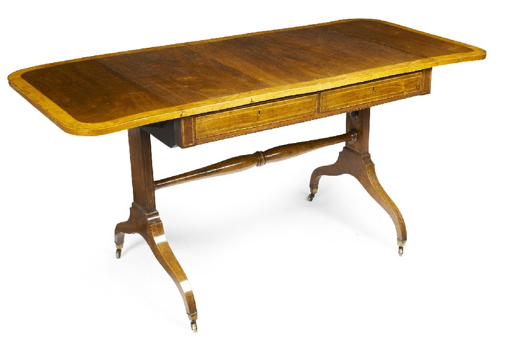 REGENCY ROSEWOOD AND SATINWOOD BANDED SOFA TABLE