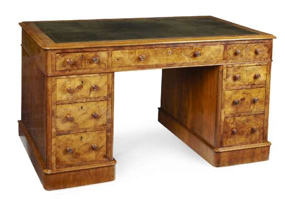 VICTORIAN BURR WALNUT PEDESTAL DESK