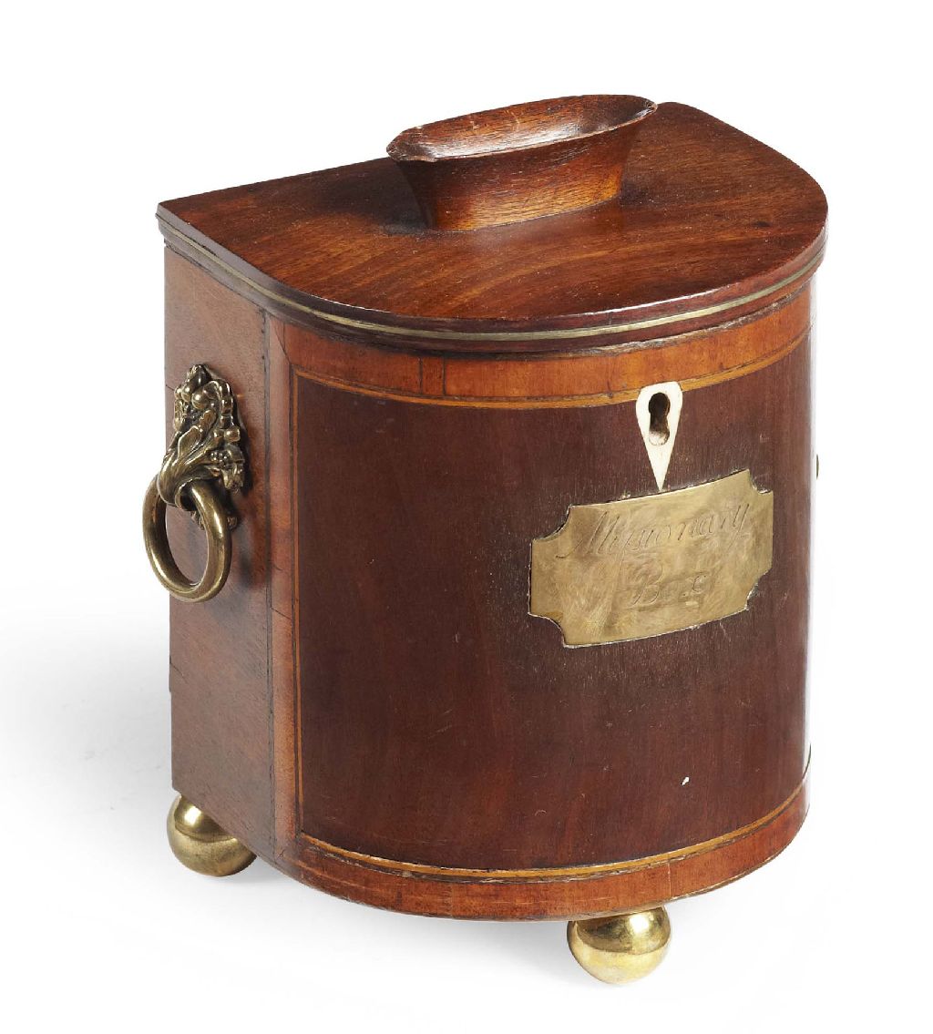 GEORGE III MAHOGANY AND CROSSBANDED DEMI-LUNE COLLECTIONS BOX