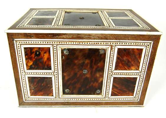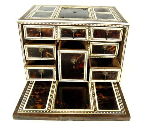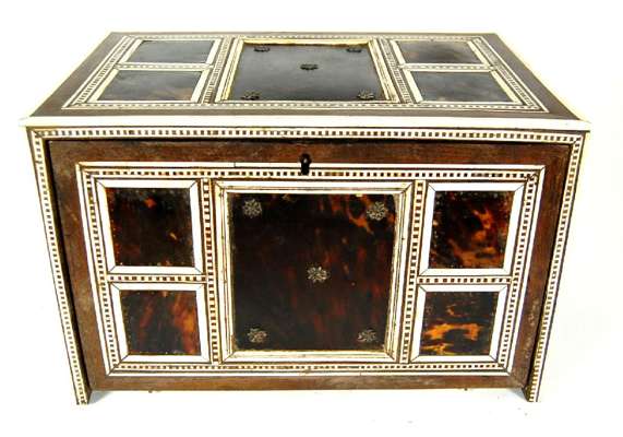 ANGLO-PORTUGUESE TORTOISE SHELL AND IVORY TABLE CABINET