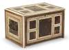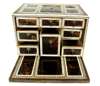 the panelled sides with twin carrying handles and fall front, opening to reveal a fitted interior with an arrangement of eight small drawers