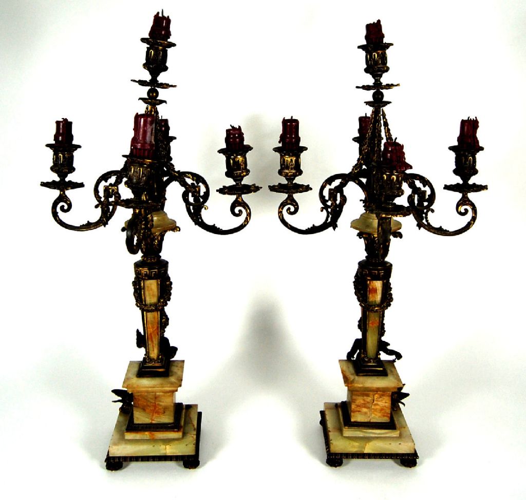 PAIR OF LOUIS XVI STYLE ONYX AND GILT METAL CANDELBRA