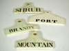 each black painted with text: 'port', brandy' ,'mountain' and shrub' (4)
