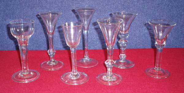 THREE DRAWN TRUMPET BOWL KNOP STEMMED WINE GLASSES