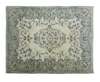 the eau de nil field with central small light blue rosette medallion surrounded by foliate vine and birds, similar spandrels, within shaped green palmette, bird and vine border