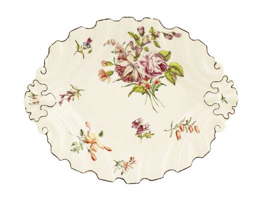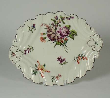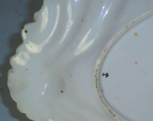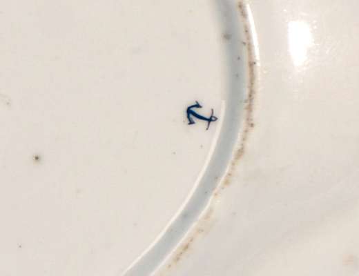 the flared rim with dark brown edge, freely painted with summer flower spray and sprigs, painted dark brown anchor mark