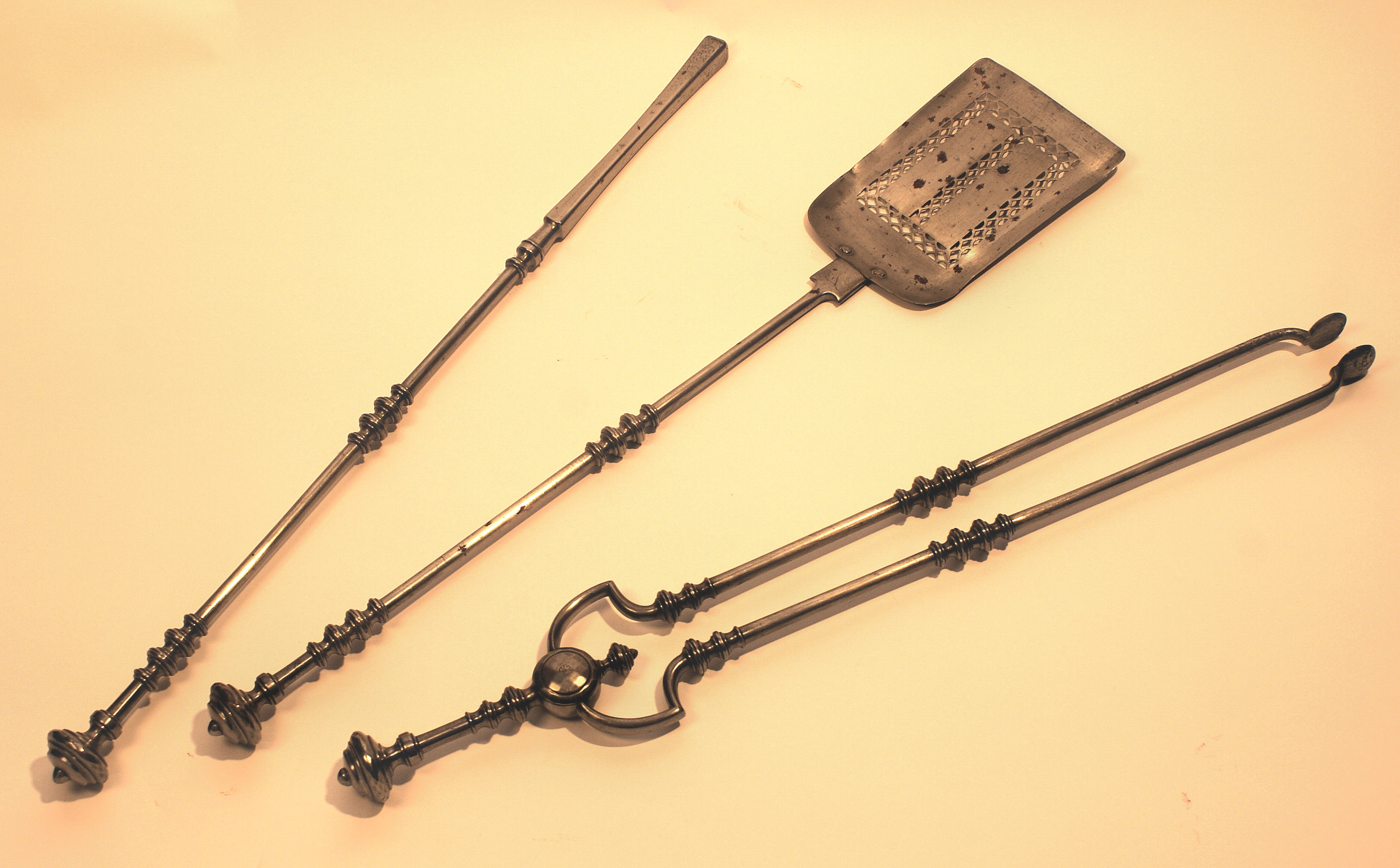 SET OF THREE POLISHED STEEL FIRE IRONS