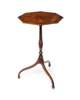 the box edged octagonal top on slender column and down turned tripod legs terminating in spade feet