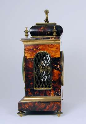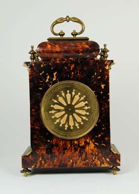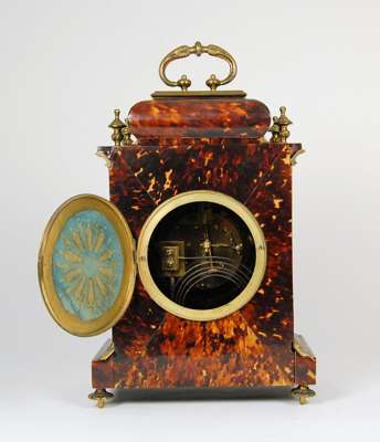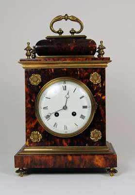 *VICTORIAN TORTOISESHELL AND LACQUER BRASS MANTLE CLOCK †