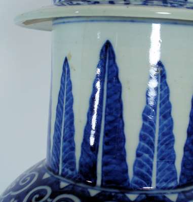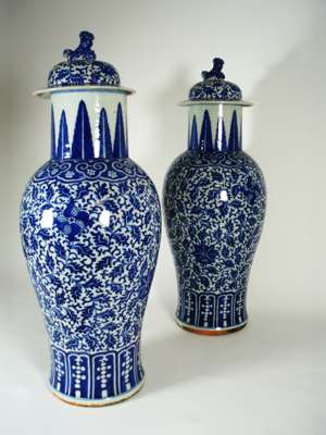 PAIR OF CHINESE BLUE AND WHITE VASES AND COVERS