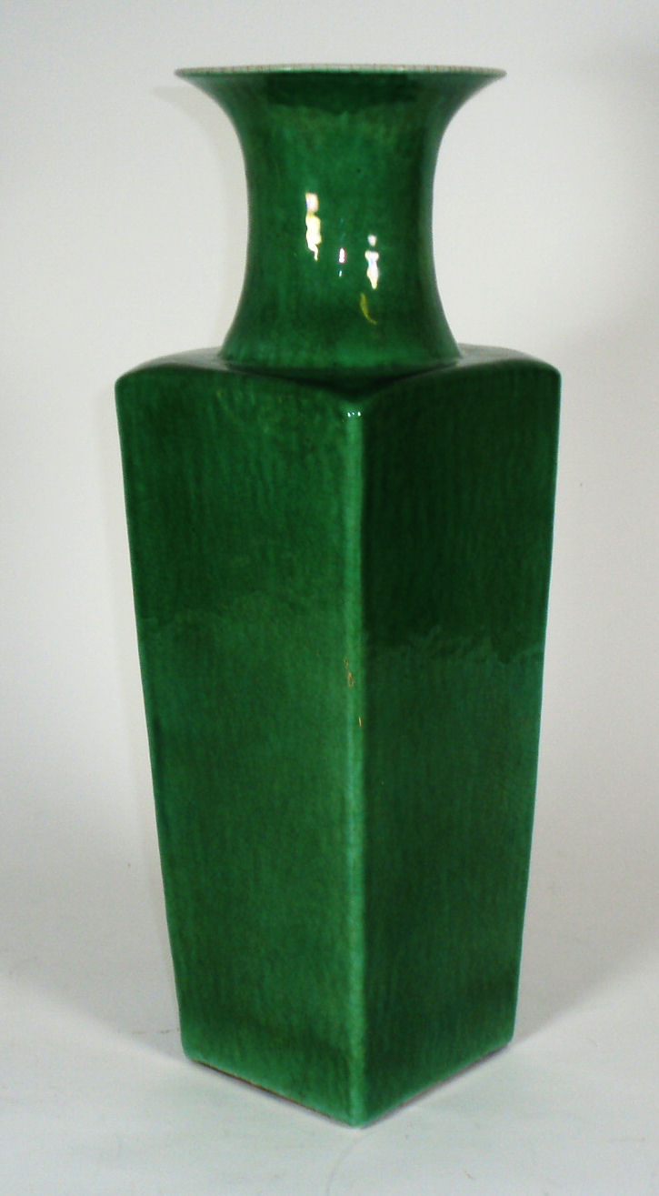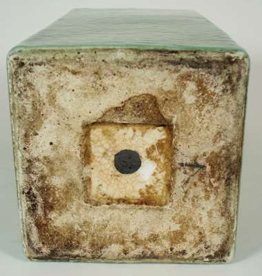 of square tapering form with green glaze, drilled