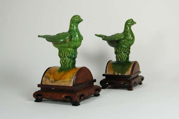 PAIR OF CHINESE BIRD FORM ROOF TILES
