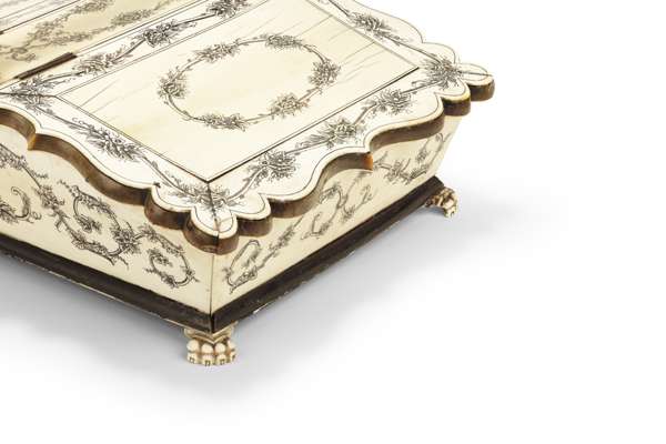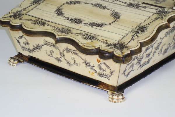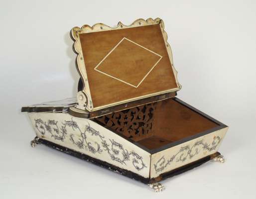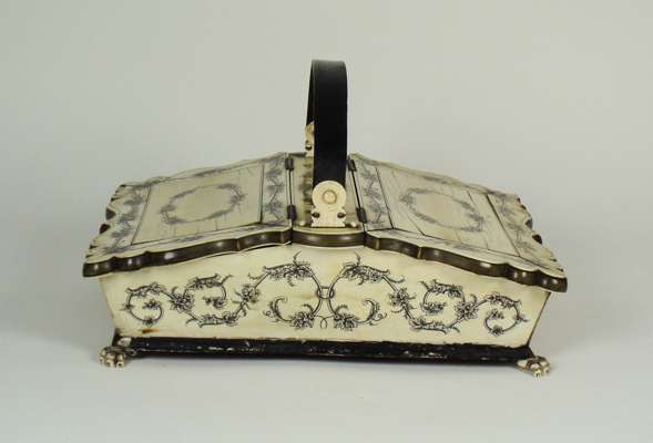 of basket form, the sides engraved with scrolling flowers and foliage, raised on carved paw feet