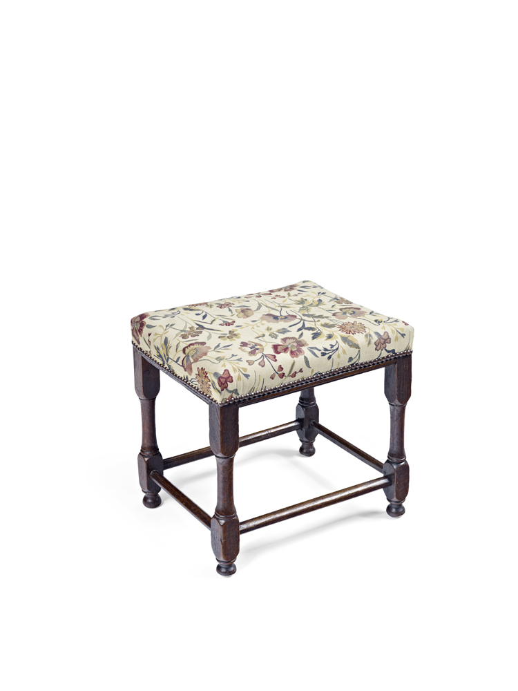 CHARLES II WALNUT AND UPHOLSTERED STOOL