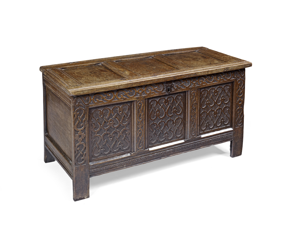 CHARLES II CARVED OAK COFFER