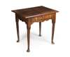 the moulded rectangular top above one frieze drawer and a shaped apron, raised on turned tapered legs ending in pad feet